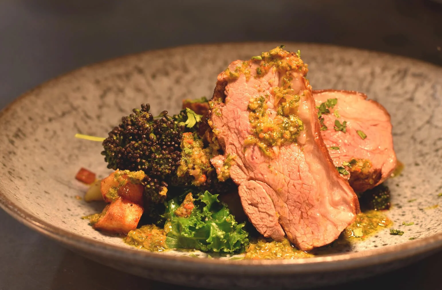 The restaurant boasts a stunning contemporary barn feel with exposed timber beams, stylish furniture, and breathtaking views.